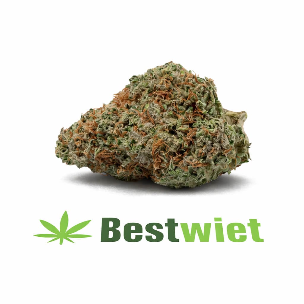 Heel mooie grote top van 5g en hele mooie kleur, vol witte trichomen … maar voor mij is dit geen kush.